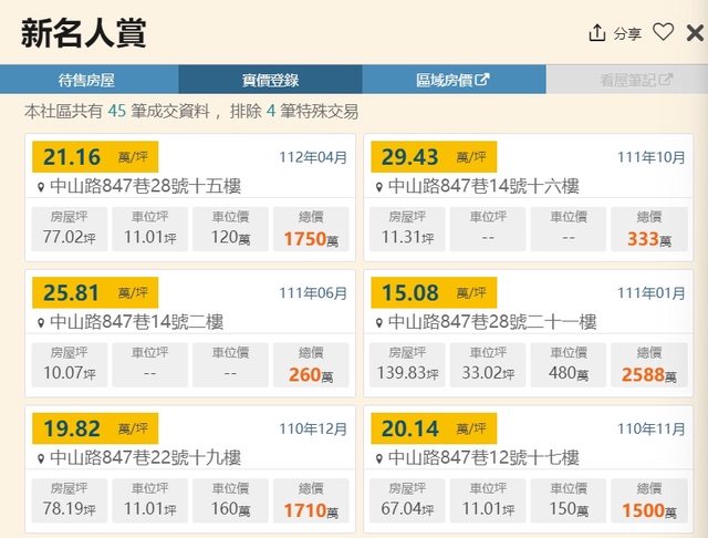 本物件附近地址實價登錄 :