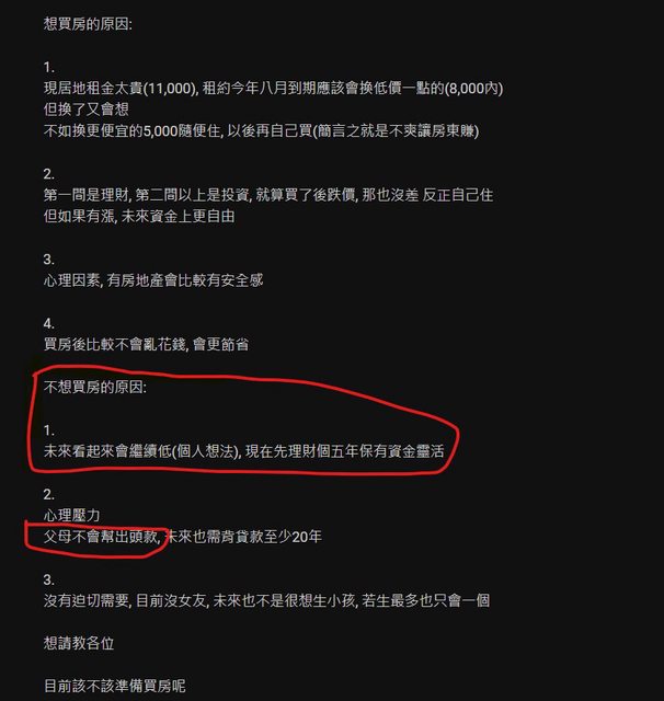 : 你當時預期未來的房價會越來越低,所以後來選擇不買房。 XDDDD