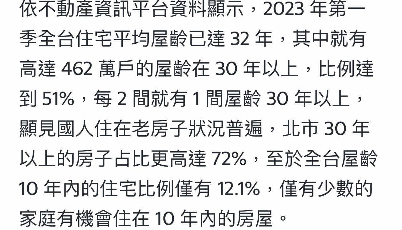 推 sospeter: 不買20年以上?但雙北成交,大多都30年以上老屋 09/03 09:38