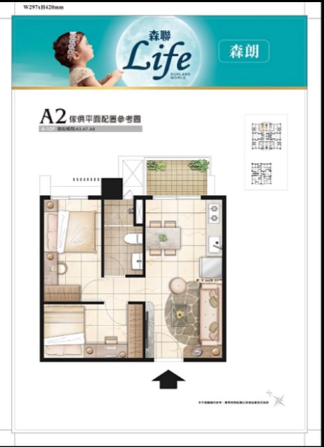 格局 : 2 房 1 廳 1 衛 1 陽台