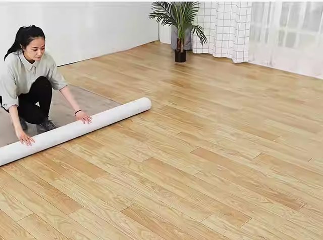 第一層是裝潢工程用的地板膜,有許多顏色和厚度可以選