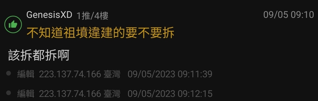 → Tylose: 就事論事談就好,另外這個版應該不喜歡大肆討論違建 XD 09/06 14:18