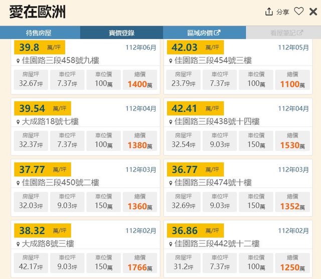 該物件鄰近實價登錄交易資訊