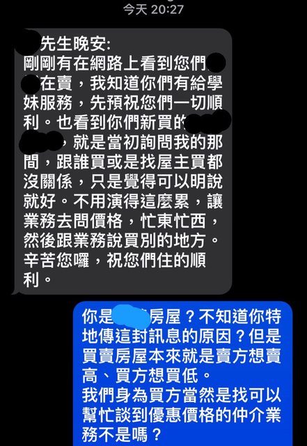 推 copy5566: 我以為仲介都挺忙的,原來也有閒著發慌傳訊嗆半年前客 09/14 22:31