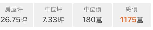 推 gogoyamaha: 中古屋總價才是真的,車位價格參考就好。 10/06 09:33