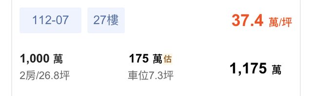 → kiroru: 樂居的似乎會去抓早期數據 找到大致車位價格/坪數 扣掉算 10/06 10:34