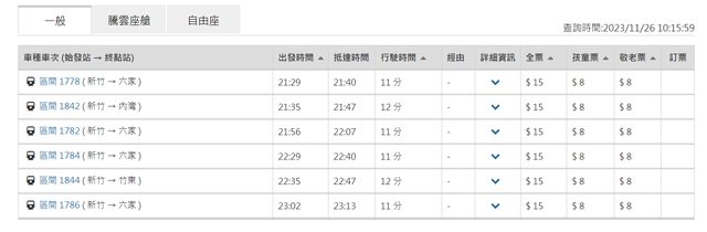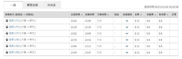 從六家火車站(竹北高鐵)到新莊車站最晚一班 23:40