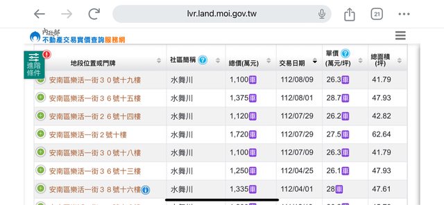 本物件附近地址實價登錄 :