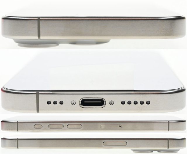 ▼本體上方/下方/左側/右側邊框,展現出鈦金屬原色及髮絲紋表面。下方USB-C連接埠兩