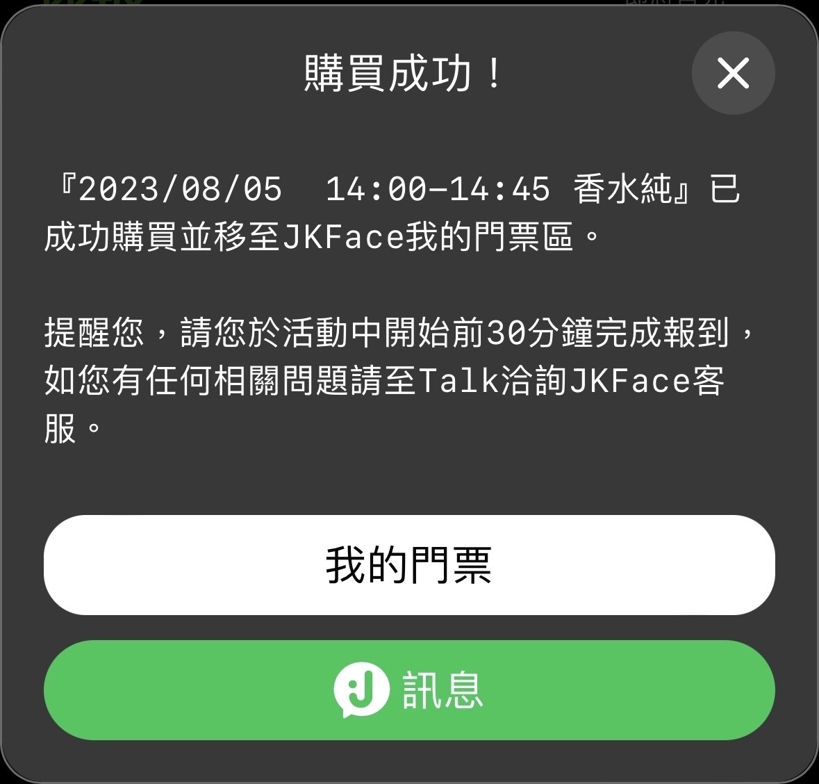 推 stevejack: 我的門票那邊有預約成功 應該就算數吧? 沒有跳出購買 07/28 19:24