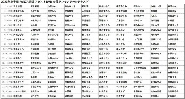 (2023上半年實體DVD銷售女優排行)
