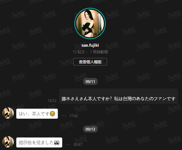 : 我要講的是我發現到SWAG居然有聊天功能,就很試探性地問他是不是本人