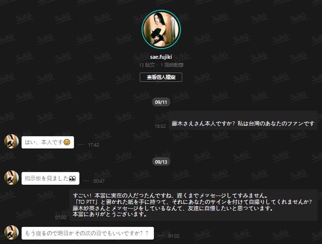 : 這裡補充,如果你打【請問你是本人嗎?我是你台灣的粉絲】
