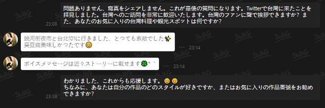 內容是我前一天有在SWAG看到他,然後私訊確認他是否為真人