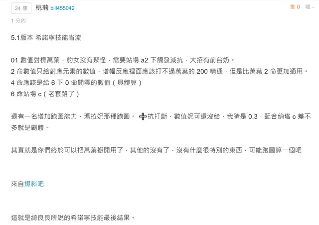 → a22345e: 水雷火冰角色才能觸發天賦-》滿夜魂-》觸發e減抗與q奶。 08/28 21:40