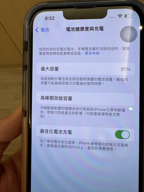 物品狀況:螢幕完好,僅四周細紋使用痕跡,電池容量91%