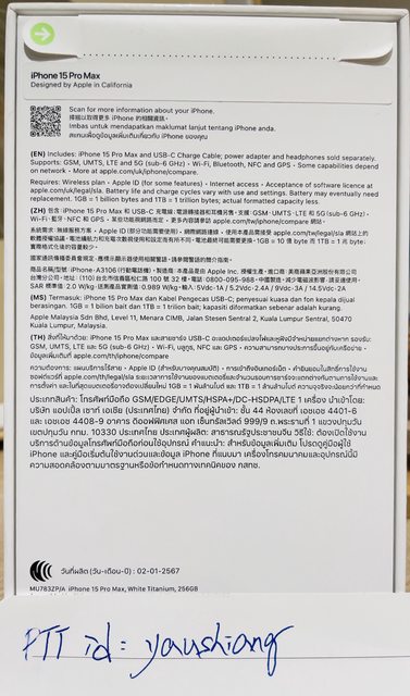 欲售物品:iphone 15 Pro MAX 256G 白色鈦金屬