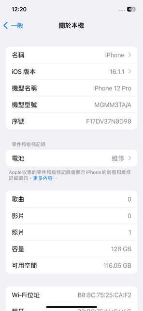 欲售物品:iPhone 12 pro 128G 金色