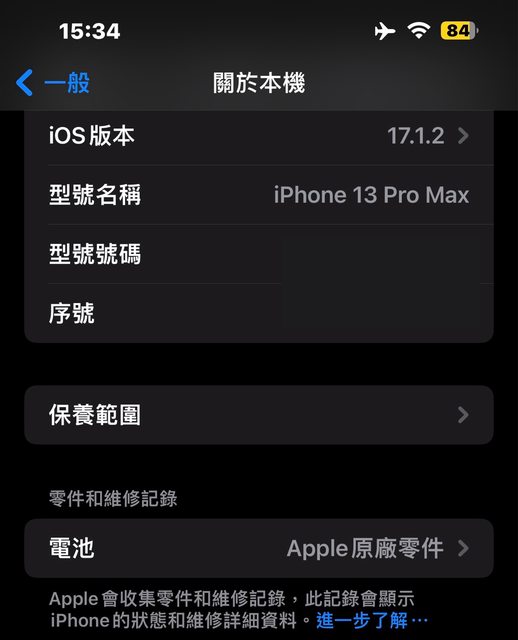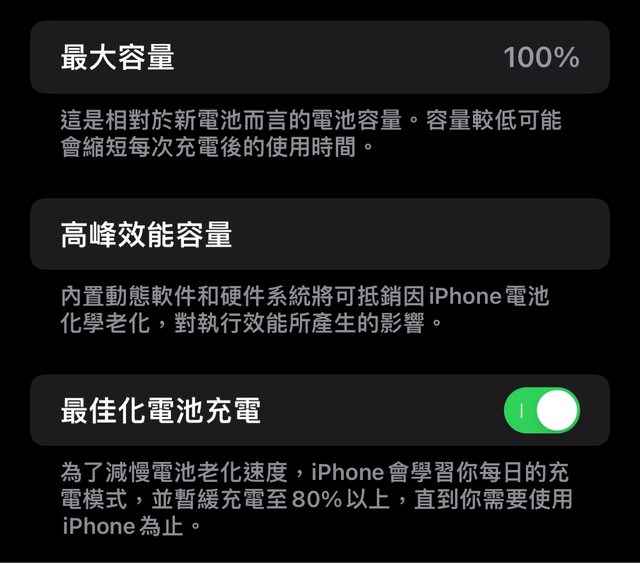 2023.11 換過電池,不久後就換手機,因此健康度100%