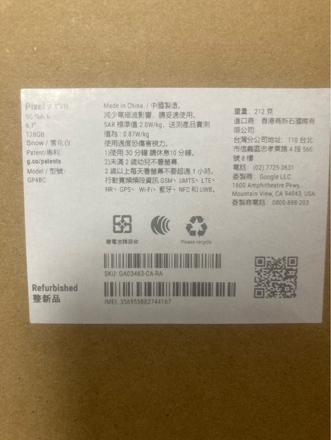 物品狀況:Google官網RMA整新機,未拆
