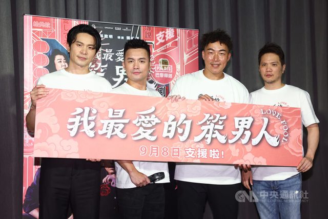 電影「我最愛的笨男人」將於9月上映,主要演員姚淳耀(左起)、范逸臣、郭泓志與監