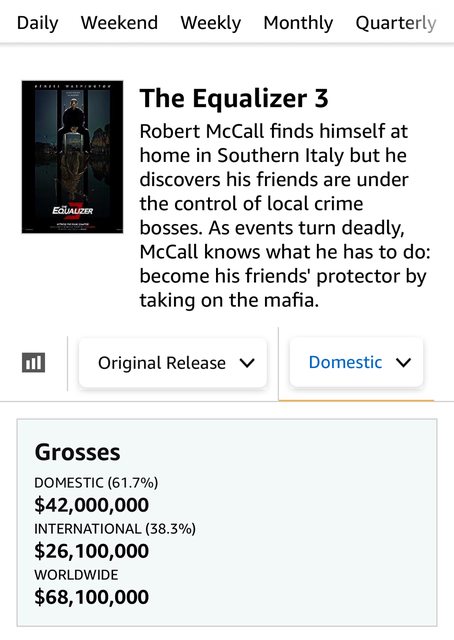 新聞網址:https://ent.ltn.com.tw/news/breakingnews/4416820 《私刑教育3》猛奪台美全球三冠王!海外創系列最佳開片 〔記者許世穎/綜合報導〕由影帝丹佐華盛頓和導演安東富夸合作的系列最終章《私刑教 育3》,上映首週末(9月1至3日)初步統計以3450萬美金(約台幣10.99億元)登頂北美 週末冠軍,北美以外的海外市場更創下系列最佳開片成績,全球首週也以6000萬美元(約 台幣19.12億元)登上票房冠軍。 https://i.imgur.com/LywIz6H.jpg