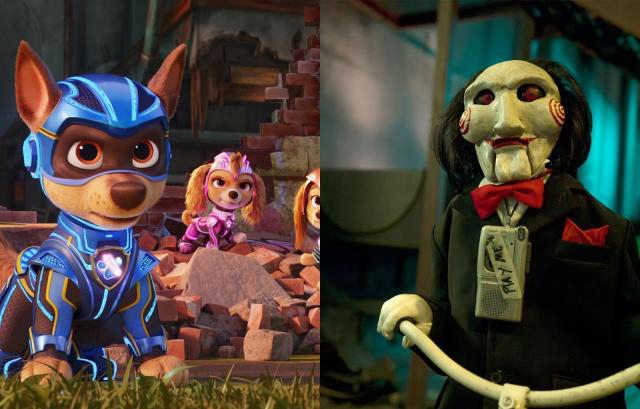 2.虐殺恐怖片《奪魂鋸X》和兒童動畫電影《汪汪隊立大功:超級大電影》也同時上映,