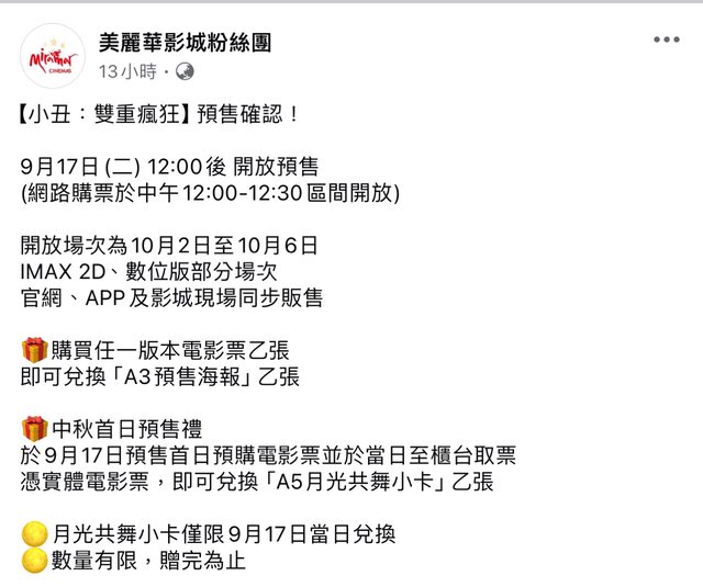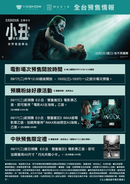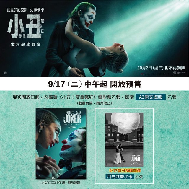 標題[情報] 《小丑:雙重瘋狂》9/17預售票 全國開賣!