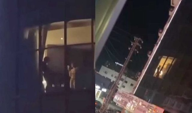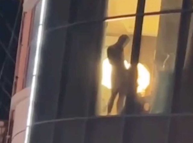 影片自本周開始在網路上流傳,畫面中可見,這些男女住在大樓約三樓的位置,還特別將