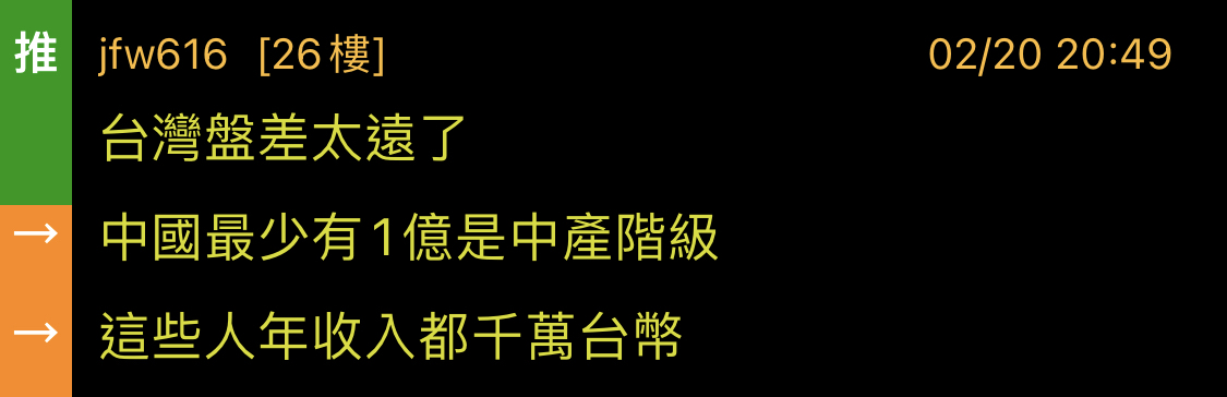 → jfw616: 中國最少有1億是中產階級 02/20 20:49