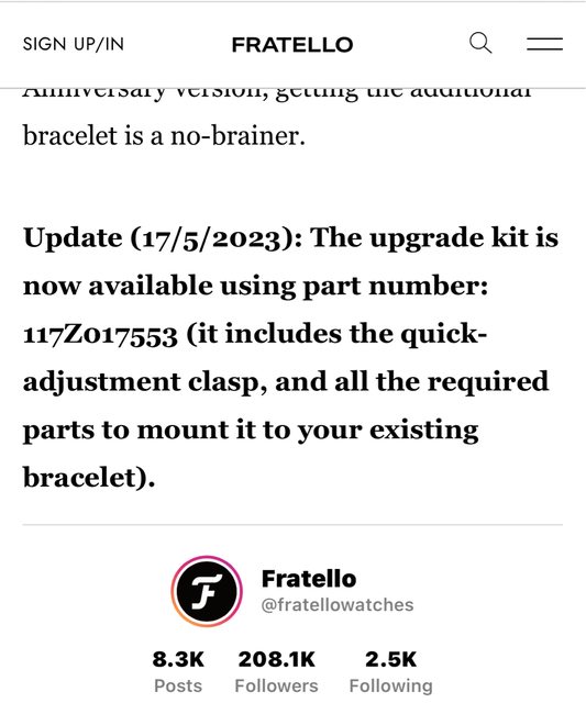 登月的錶友是無法單獨購買新錶扣零件來升級快調的,因為新舊款錶扣的連接臂寬度並不