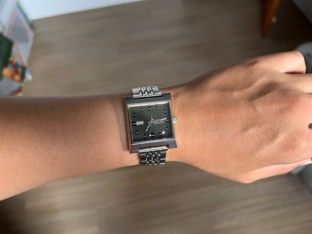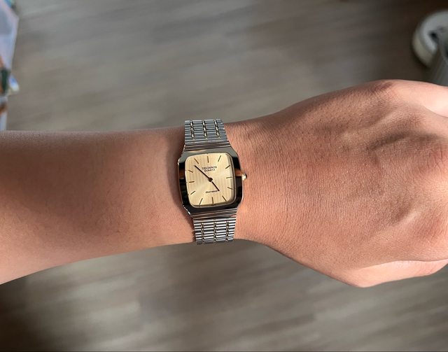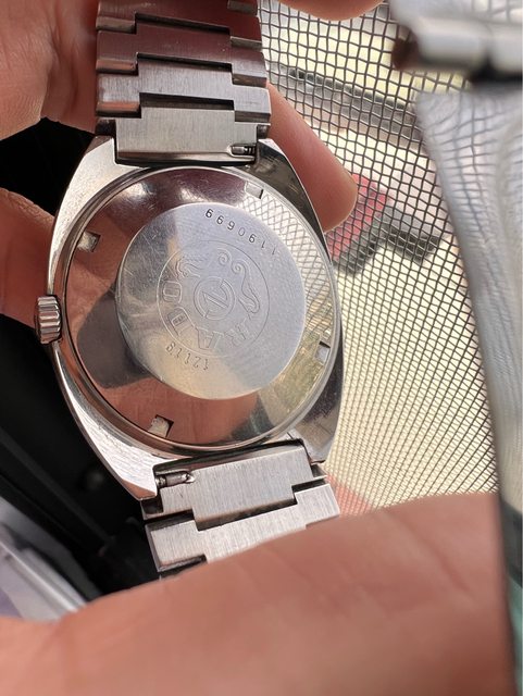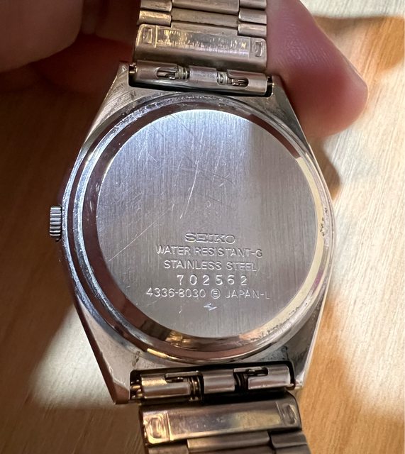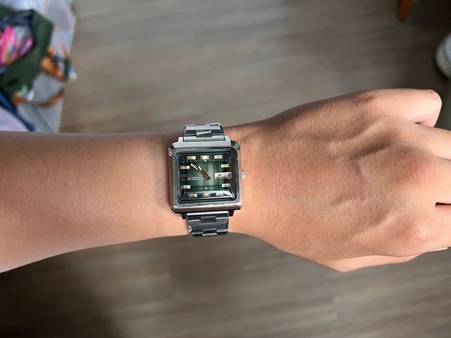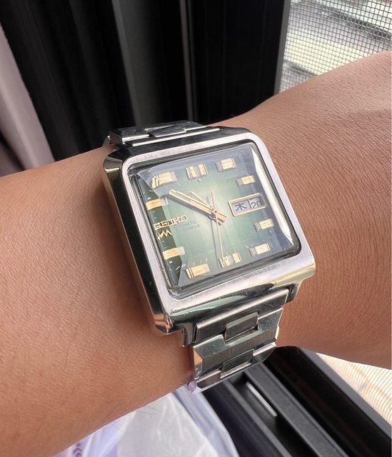 5.精工方塊酥-4000售出 機芯:自/手動上鍊 錶徑:約36(含錶冠 手圍:16.5cm 走時快調都正常 膠化玻璃,有打磨過,微細紋 含錶帶