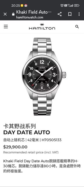 品牌名稱:Hamilton khaki 卡其野戰