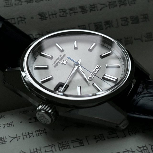 此錶與元祖44GS同為銀白面盤,且使用與元祖44GS相同的細長時、分針組,此針組打磨細