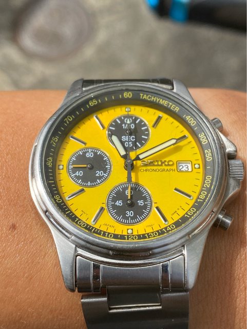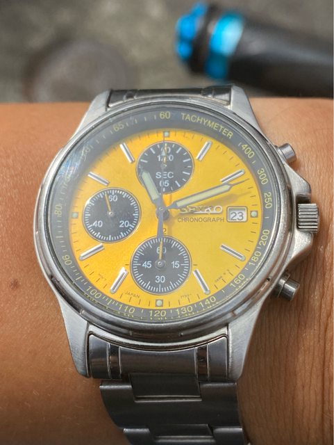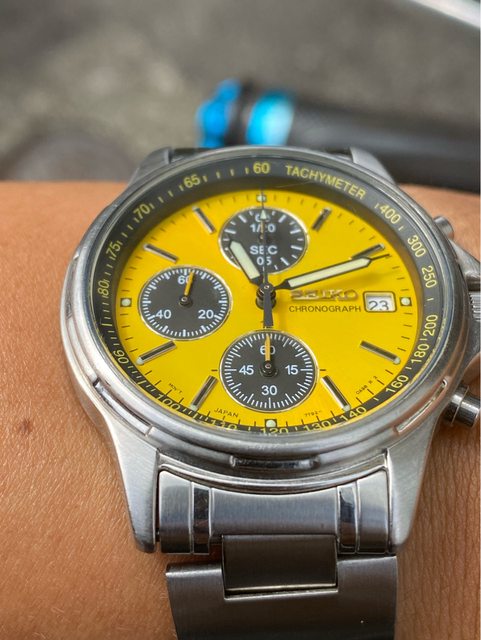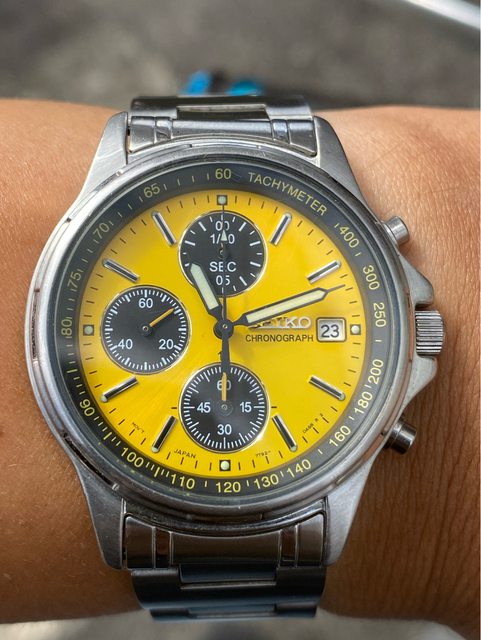 少見的精工黃色熊貓石英計時錶