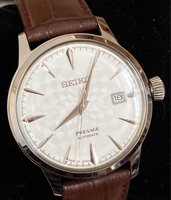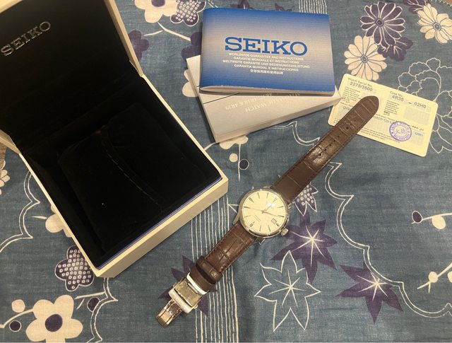 品牌:Seiko presage Sakura Fubuki 櫻吹雪 限量款 型號:SRPC03J1 錶徑:40.5mm 保卡年份:2018/11 預售價格:17200 新舊程度:多錶輪流帶,9成新。 玻璃無劃痕,錶殼錶帶些微使用痕跡見照片