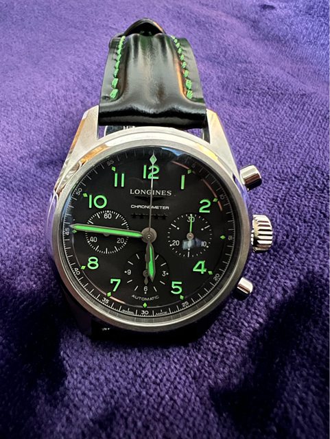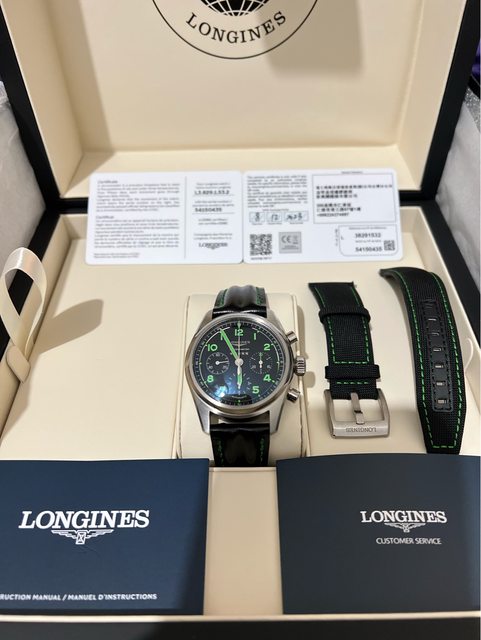 備註:調整收藏,配件齊全,(保卡、浪琴原廠錶盒),直徑42毫米鈦金屬錶殼/時間指示