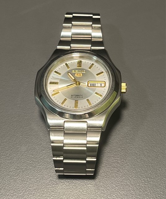 精工五號,背蓋小獅子logo為其特色,這系列少見的方表,適合正裝搭配