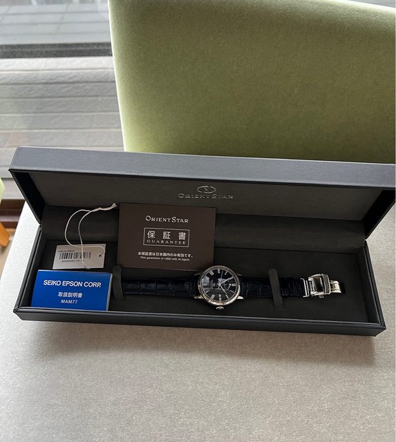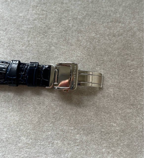 1.Orient 經典動能儲存,深藍面盤白色指針,藍寶石鏡面,盒單原廠錶扣,走時功能正