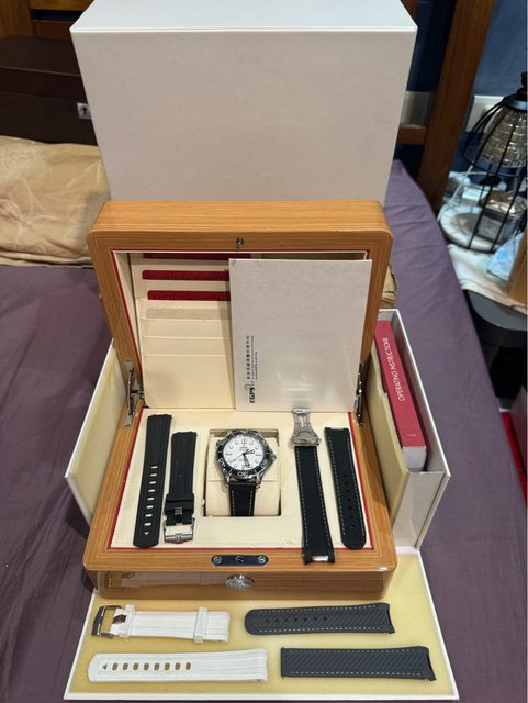 大全配,連最外面得棕色紙箱都還保存著,額外還附贈一堆錶帶給您,非常值得您參考看