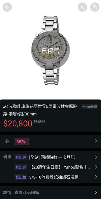 品牌名稱:Citizen XC 花語系列 光動能鈦合金電波錶(田馥甄代言)