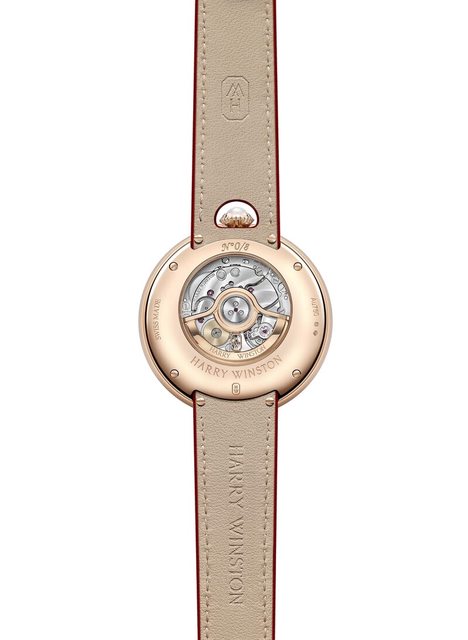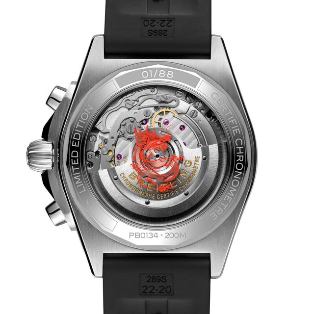 直徑42毫米18K玫瑰金錶殼,透視錶底蓋飾以龍紋圖案