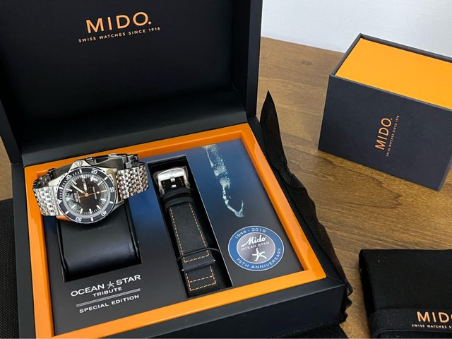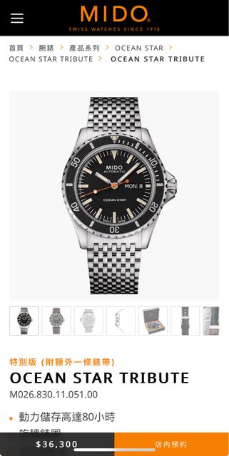 品牌名稱:MIDO 腕錶型號:Ocean Star Tribute 特別版 保卡年份:2022/12(保固內,至2025/12) 配件狀況:正常配戴痕跡自認9成up,錶扣整片鏡面材質一買到就去包膜了(目前未拆膜) ,附贈錶帶全新未使用,盒單齊全(含攜行盒) 聯絡方式:站內信加line 預售金額:23,000(含運) 交易方式:匯款後裝箱寄出 近期調整收藏中,割愛給喜歡的錶友 商品圖片: