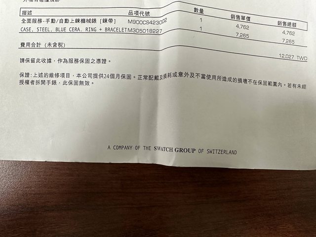 隨附物件:剩餘錶節、原廠盒單、保養收據(憑單有24個月保固)
