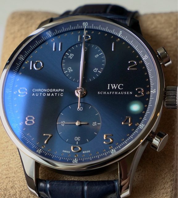 手錶型號:IW371491 藍面 大葡萄牙系列計時腕錶