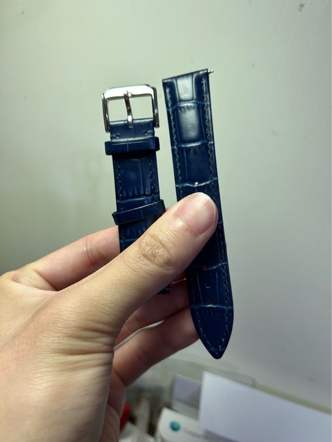 4 藍色頭層鱷魚紋小牛皮錶帶 快拆20mm