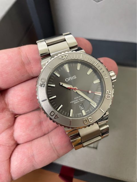 標題[賣錶] ORIS AQUIS RELIEF 灰面 含鋼帶及膠帶