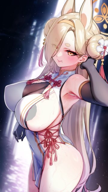 (1)紅色眼影,金髮,巨乳,露出 外側乳 的服裝,沒有直接露出奶頭.