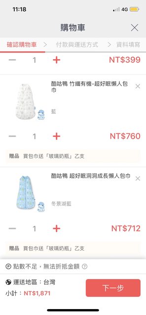 準備下單才注意到有買包巾送奶瓶的活動