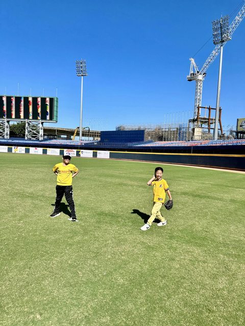 天特地排出時間帶著兒子到洲際棒球場為這一群勇士們加油吶喊。
